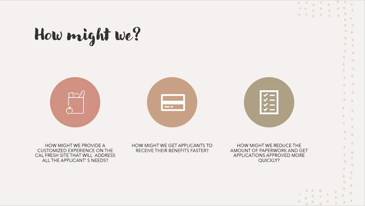 I began brainstorming ways in which the CalFresh application process could be improved to make it easier for applicants to apply and receive their benefits.