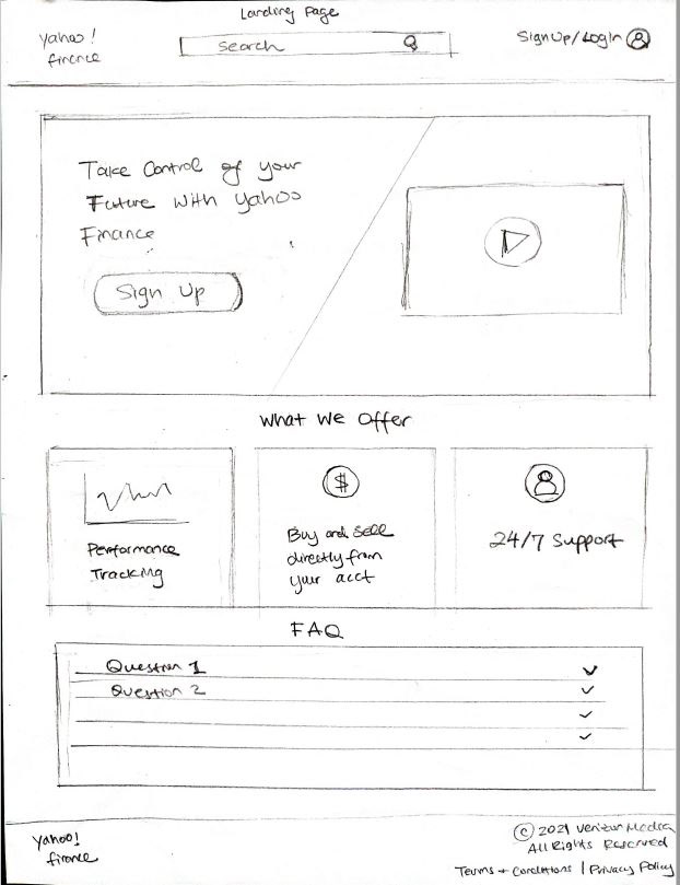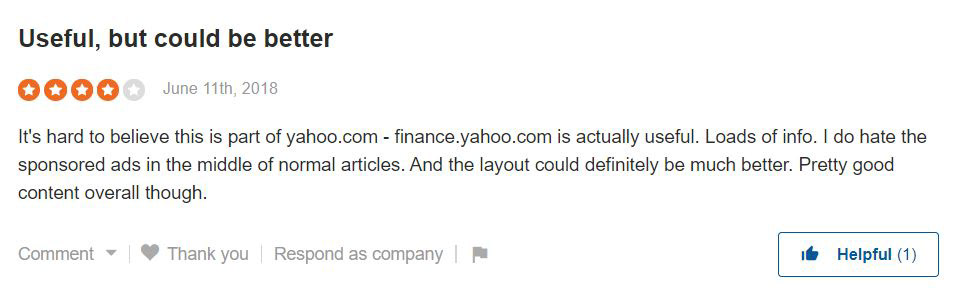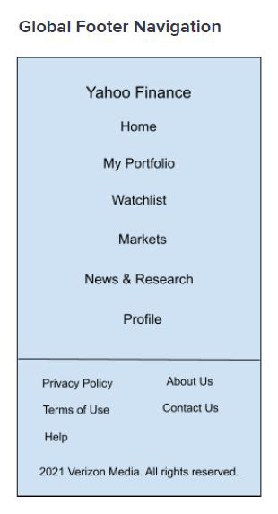The Yahoo Finance site appears cluttered with the amount of different elements that are on the page. It is difficult to tell what content users should care most about as important articles and features are the same size as other content on the page.